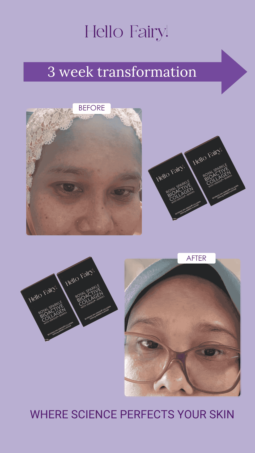 Dalam masa 3 minggu saya perasan kulit saya glow up, kulit rasa lembab sampai ke mlm. sekarang ni hari2 saya tengok cermin sbb x sabar nak tengok apa perubahan kulit saya. saya cuba set combo (Renew & Royal) tapi saya lagi suka Royal sbb dia booster kepada kulit saya.